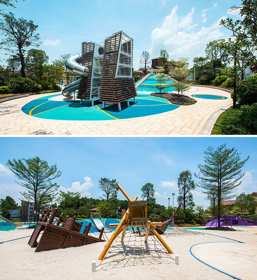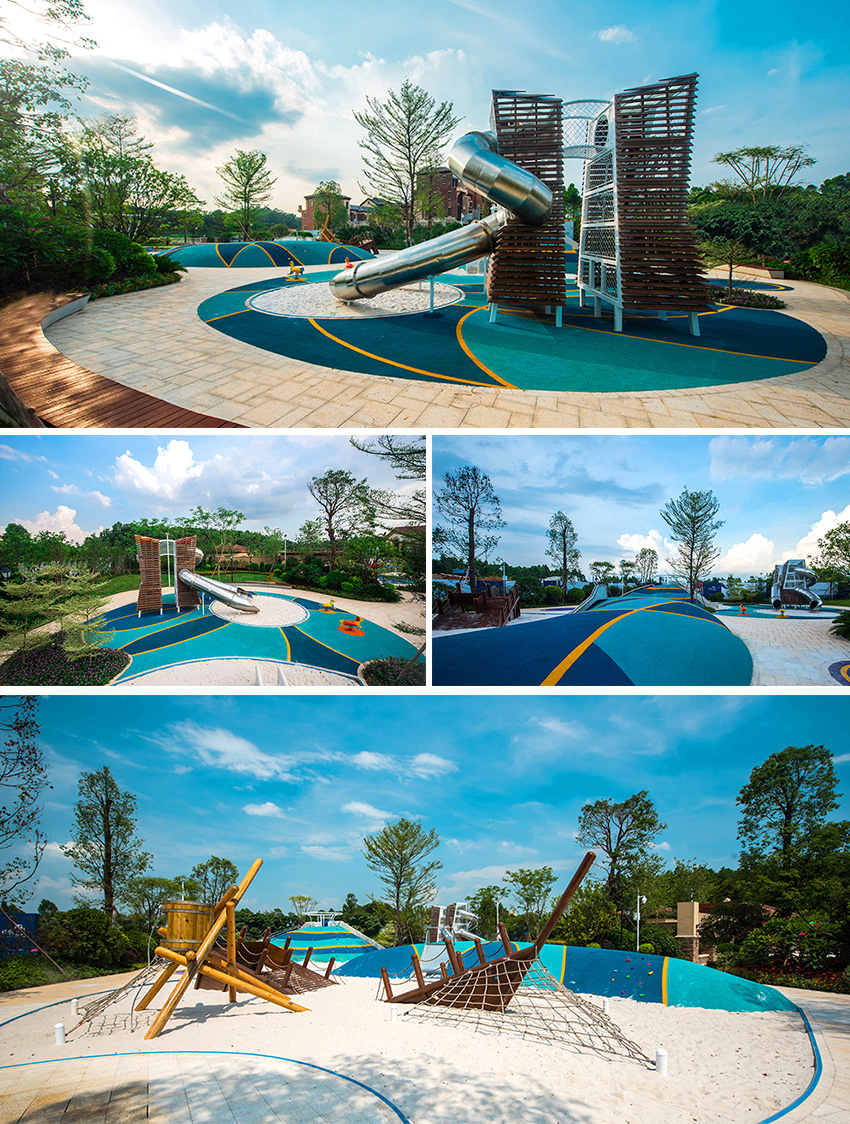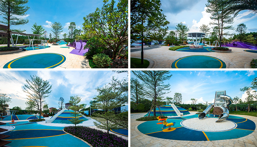 佛山云東海地區自古以來就水面彌漫百里,稱之“古云東海”。云東海高爾夫花園洛嘉兒童主題樂園以水作為核心元素進行發想,以創造五彩泡泡家園夢幻旅程為設計核心理念。設計師在這里用五彩泡泡的概念實現了大小朋友們的夢想,利用非動力兒童游樂設施的概念打造兒童游樂場,為孩子們提供可持續快樂!