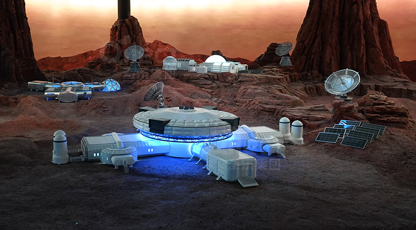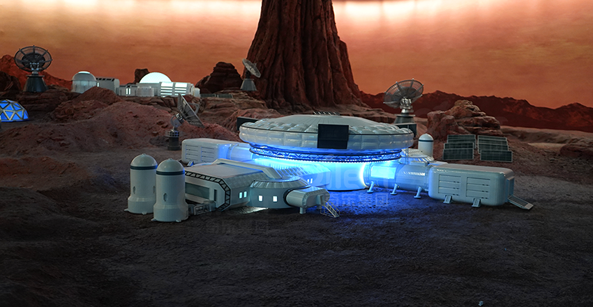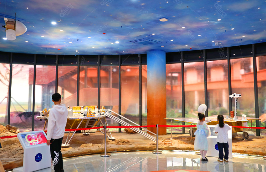 一層設(shè)計為展示區(qū),高度還原的太空站艙段、神舟飛船、長征火箭以及火星場景等等,能夠讓孩子們更加直觀、近距離地了解航天科技和太空知識,為進一步的探索太空打好基礎(chǔ)。