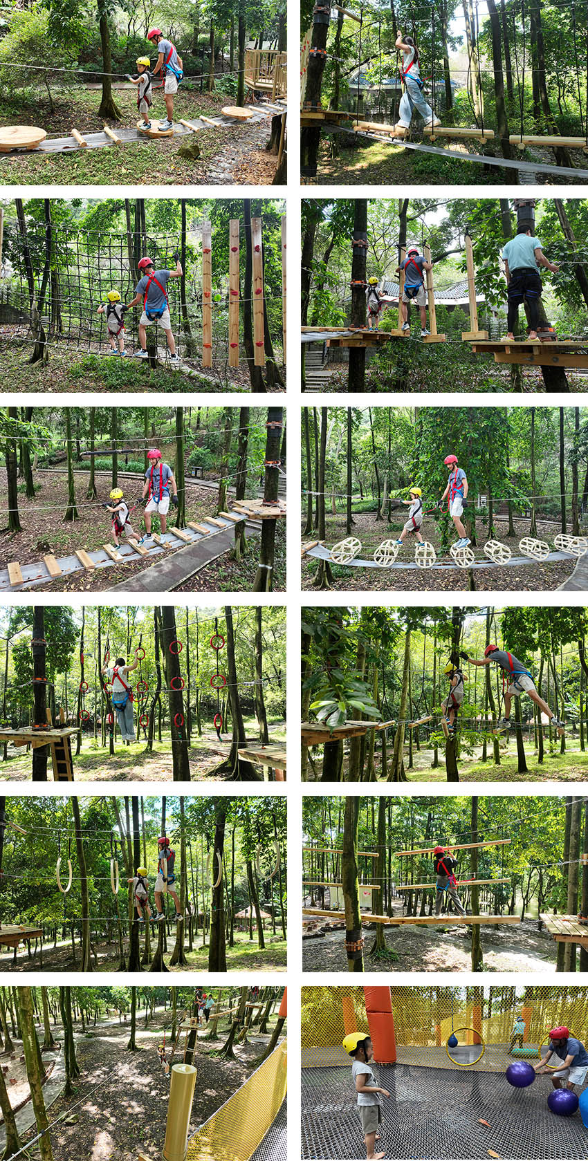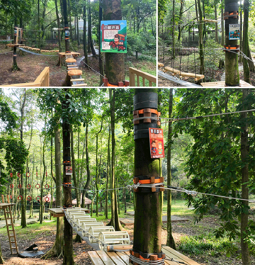 根據現場環境來設計線路及設施,在不破壞原有環境的基礎上,充分利用樹木來作為支撐,確保項目自然、和諧。
