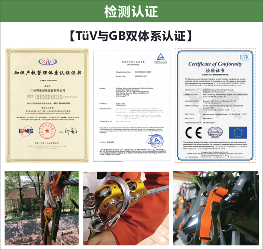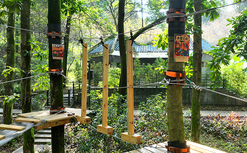 帽峰山“穿越三國”主題叢林穿越探險樂園不是我們第一個叢林穿越項目,但每一次落地,我們都會根據在地條件重新“解題”,因為作為廠家,我們比任何人都清楚:設備的可靠性,藏在研發時的“多想一步”,藏在生產時的“多檢一遍”,步道上的每一根木材,每一條繩索都經過嚴格的安全和環保檢測,確保游客可以在安全健康的環境中盡情體驗”。