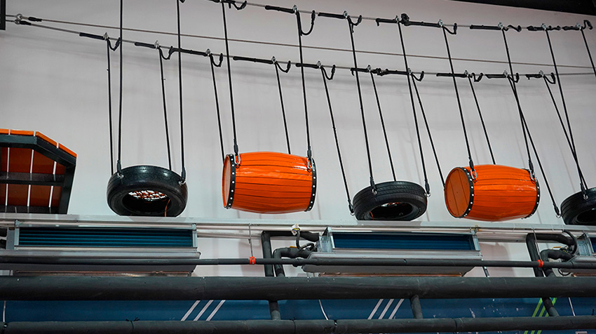 玩膩了地面上的滑梯,沒關系,我們在空中也設計了游玩拓展步道,木桶、輪胎、搖擺橋、獨木橋、圓筒通道、“M”字吊橋等多個項目任你體驗,更有空中自行車項目,勇者來戰!