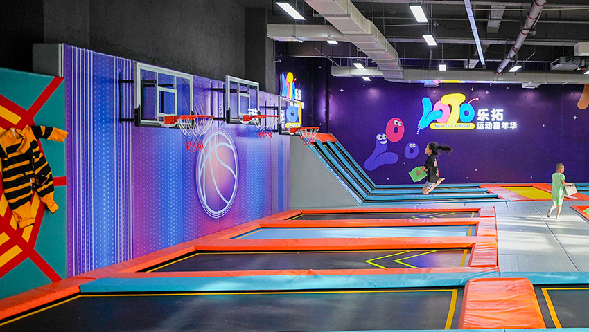 性能優異的蹦床,軟包全防護的邊框,安全且舒適,你可以肆意蹦跳,配合蜘蛛墻和灌籃設備,可以玩出各種花樣!