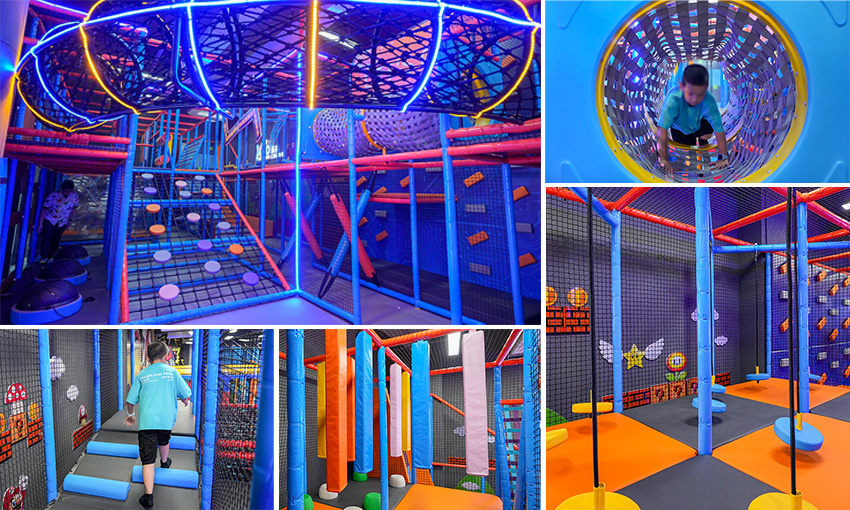 超級好玩的闖關項目,在這個區域,設計了障礙爬坡、森林探寶、鉆筒等功能項目。我們都變身為超級馬里奧,一起來闖關吧!