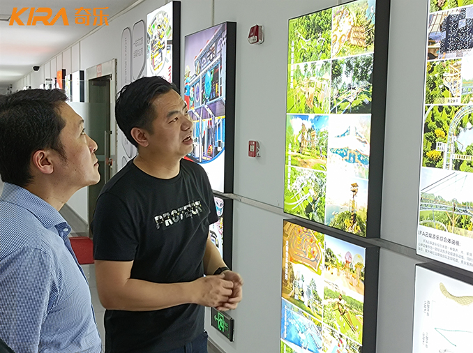 4月1日下午,本溪市平山區領導代表到達奇樂集團科學城總部,在集團總裁易總與設計總監、視覺總監等公司高管的引導下,各位領導來賓先后參觀了奇樂集團文化墻、總部辦公區、研發設計部等重要場所,詳細介紹了奇樂公司的發展歷程、企業宗旨以及未來展望。。各位領導代表充分肯定了奇樂公司在過去幾年里所取得的行業成績,并針對景區游樂項目規劃提出了相關指導建議。
