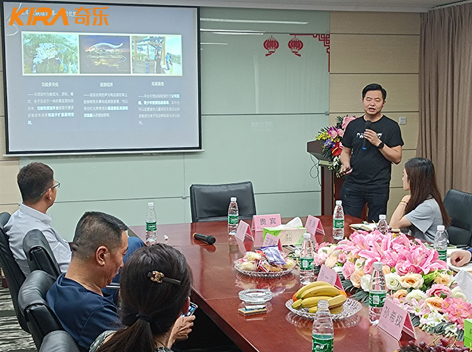 之后各位領導代表在奇樂集團大會議室參加了由集團總裁易總主持的奇樂文化旅游發展主題講座,易總向來賓們介紹了奇樂公司的目標是打造具有中國特色同時享譽世界口碑的現代游樂企業,得到了各位領導代表的贊同與認可。易總隨后向各位領導代表總結歸納了當前國內游樂行業的痛點以及開拓升級文化旅游產業的重要性,認為游樂人既要擁有超前思維進行前瞻性戰略布局,同時也須腳踏實地結合自身實際合理把控投資方向才能確保做大做強游樂事業。