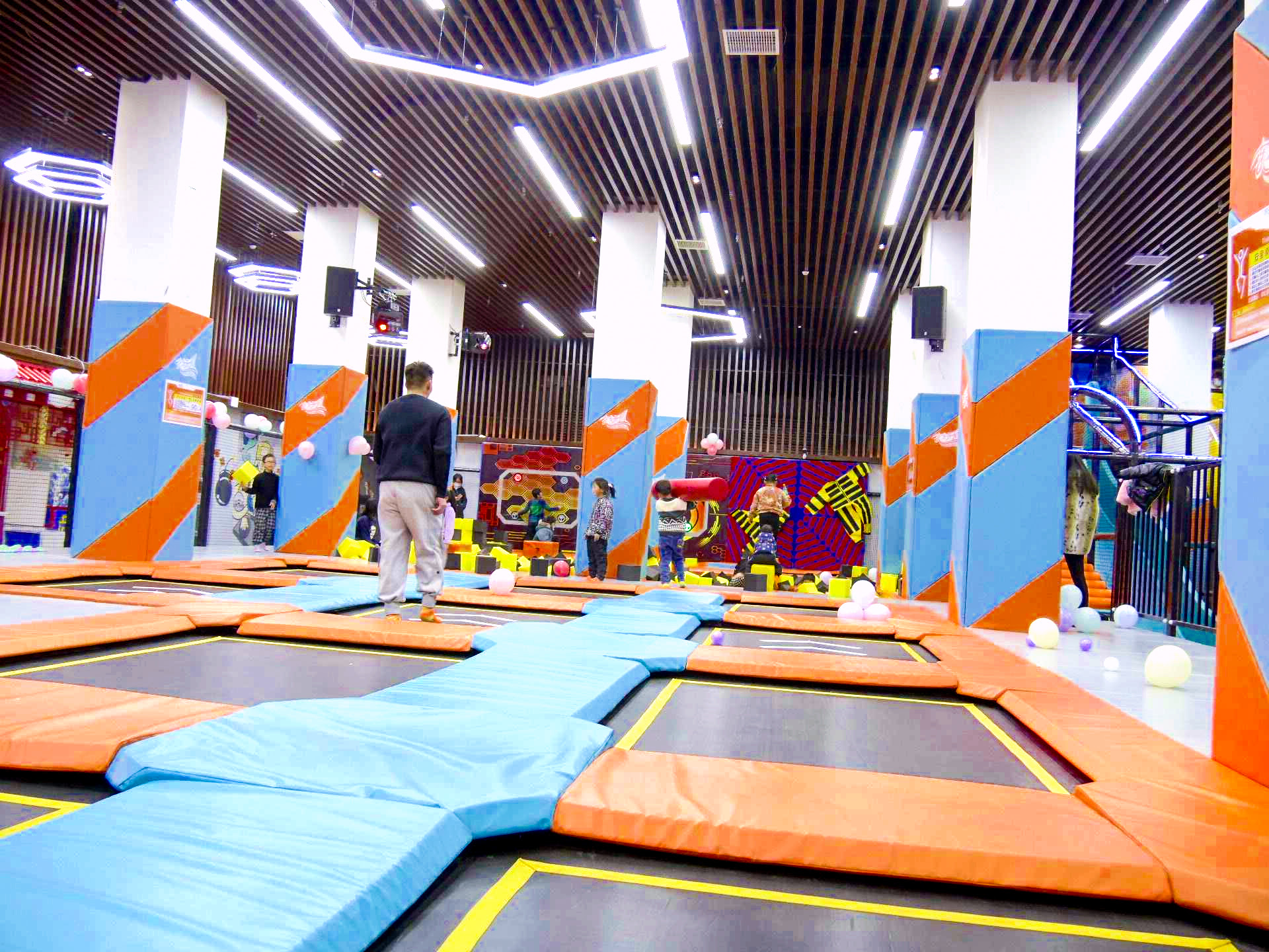 緊鄰淘氣堡,可設(shè)置2-4張專業(yè)蹦床(來自可靠的蹦床公園廠家)及一片互動投影地面。該區(qū)域能有效分流淘氣堡的人流,釋放兒童充沛精力。互動投影技術(shù)能實(shí)現(xiàn)地面游戲的快速更新,以極低的邊際成本保持內(nèi)容新鮮感。