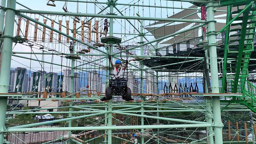 攀爬挑戰(zhàn)區(qū):依托鋼結(jié)構(gòu),設(shè)置了不同難度的攀巖點(diǎn)、繩網(wǎng)矩陣和空中步道,滿足從兒童到成人不同年齡層的探險(xiǎn)需求。