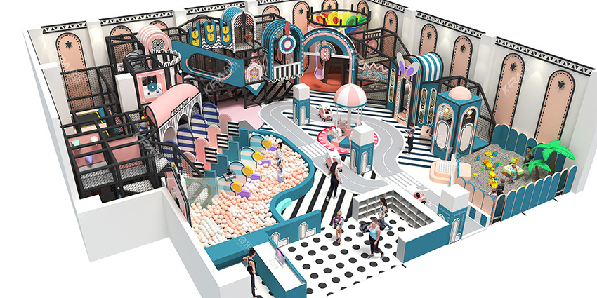 在裝飾設(shè)計上采用竹葉和竹竿的綠色設(shè)計元素,以原生態(tài)、自然風(fēng)格為基調(diào),采用原木、繩網(wǎng)和不銹鋼等柔韌度好的生態(tài)材料。滿足大眾貼近自然、主題鮮明、寓教于樂的兒童素質(zhì)訓(xùn)練教育親子樂園的精神訴求。